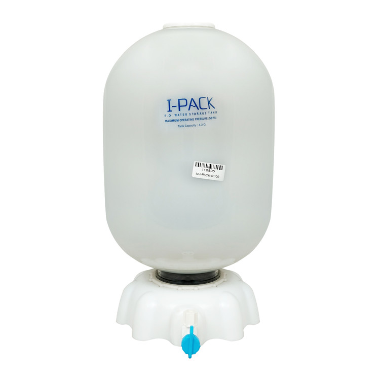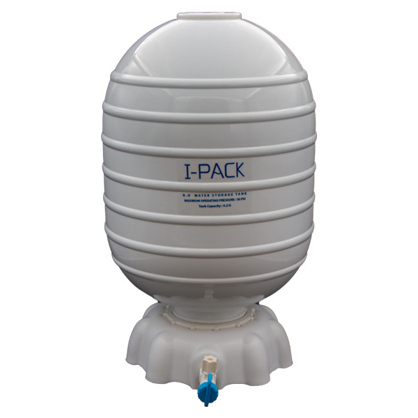 مخزن تصفیه آب خانگی آی پک به همراه شیر مخزن : آی پک يکي از توليدکنندگان قطعات تصفیه آب در ايران مي باشد که مخازن با کيفيتي عالي در اختيار مردم مي گذارد. اين مخزن به ميزان 9 الي 11 ليتر به نسبت فشار باد و فشار تنظيم شده دستگاه آبدهي دارد. در اين مخزن از مواد اوليه فرموله شده و داراي استاندارد مواد غذايي استفاده مي گردد تيوب اين مخزن شفاف و طوري طراحي شده است که در مدت زمان طولاني آب داخل مخزن بو نميگيردو نکته بسیار مهم اینکه تیوپ ان قابل تعویض است همچنين اين مخزن با فشار کاري 50 Psi کار ميکند. محل تخليه آب در اين مخزن در بالاترين قسمت مخزن قرار دارد که باعث مي شود تمام آب داخل آن خارج شده و مانع از گنديدگي آب مانده درون آن مي گردد. ابعاد اين مخزن به گونه اي اندازه گيري شده که کمترين فضاي ممکن را در زير سينک اشغال کند و در تمامی دستگاه های تصفیه کننده آب قابل استفاده می باشد. ( این محصول به همراه شیر مخزن درجه یک می باشد. )