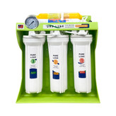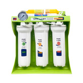 با توجه به شرایط حال حاضر دنیا و کشور ما ، گسترش انواع بیماری ها و ویروس ها عملکرد سیستم ایمنی بدن و مقاومت بدن در برابر بیماری ها بیش از گذشته دارای اهمیت است . ذکر این نکته ضروری است که علائم حیاتی در انسان بر اساس عملکرد صحیح دستگاه های مختلف بدن برنامهریزی شده است . دستگاه تصفیهآب خانگی با برند معتبر pure line مدل NEW DESIGN2020-GTK10 دارای باکیفیتترین در فرایند دستگاههای تصفیهآب خانگی است. در این دستگاه از متریال و هوزینگهای فودگرید، فیلترهایی برپایه گیاهی، مخزن آنتیباکتریال 12 لیتری، مگابوستر پمپ قوی بافشار 125 PSI و شیر جداگانه برخوردار است. عملکرد فیلترهای این دستگاه در سهمرحله اول بهاینصورت است که کلیه املاح معلق و مضر، کلر، آفتکشها و شوری را از آب گرفته و درمرحله بعد نیترات، نیتریت، جیوه و میکروارگانیسمهای شیمیایی و فلزات سنگین (کلیه املاح سرطان زا) را بهطور کامل از آب میگیرد. در این دستگاه از مرغوب ترین فیلتر قلیایی ساز(یونایزر) استفاده شده است. این فیلتر با استفاده از فرآیند الکترولیز اجزای اسیدی و قلیایی آب را جدا میکند تا PH آب را افزایش دهد. یکی از مهمترین فیلترها با جدیدترین تکنولوژی در صنعت تصفیه آب فیلتر آلومینوبال فعال می باشد این فیلتر ترکیبی از آلومینیوم و اکسیژن و زغال فعال می باشد. نحوه تصفیه آن به این شکل است که با منعقد سازی مواد زائد موجود در آب (آلودگیهای شیمیایی، آرسنیک و گوگرد و کلر و...) توسط سولفات آلومینیوم موجب لخته سازی ذرات آب میشود در واقع یونهای سولفات آلومینیوم در مواجهه با آب دارای بار الکتریکی مثبت می شوند و ذرات مخالف بار خود را جذب کرده و به هم میچسبند و ذرات بزرگتر تشکیل شده و در فرآیند تصفیه از آب جدا می شوند. دستگاه فوق دارای فیلتر اکسیژن ساز میباشد که به وسیله سنگهای بیوسرامیک و شکست مولکولی آب سطح میزان اکسیژن آب را افزایش میدهد. دستگاه فوق دارای شیر مجزا، مخزن ذخیره مجزای آنتی باکتریال می باشد که از بهترین و معتبرترین دستگاه های ارائه شده در بازار است. کلیه محصولات نشانگر کیفیت و سلامت محصول اروپا را دارا می باشند و استانداردهای NSF – ISO – FDA – WATER QUALITY – CE را کسب نموده است.